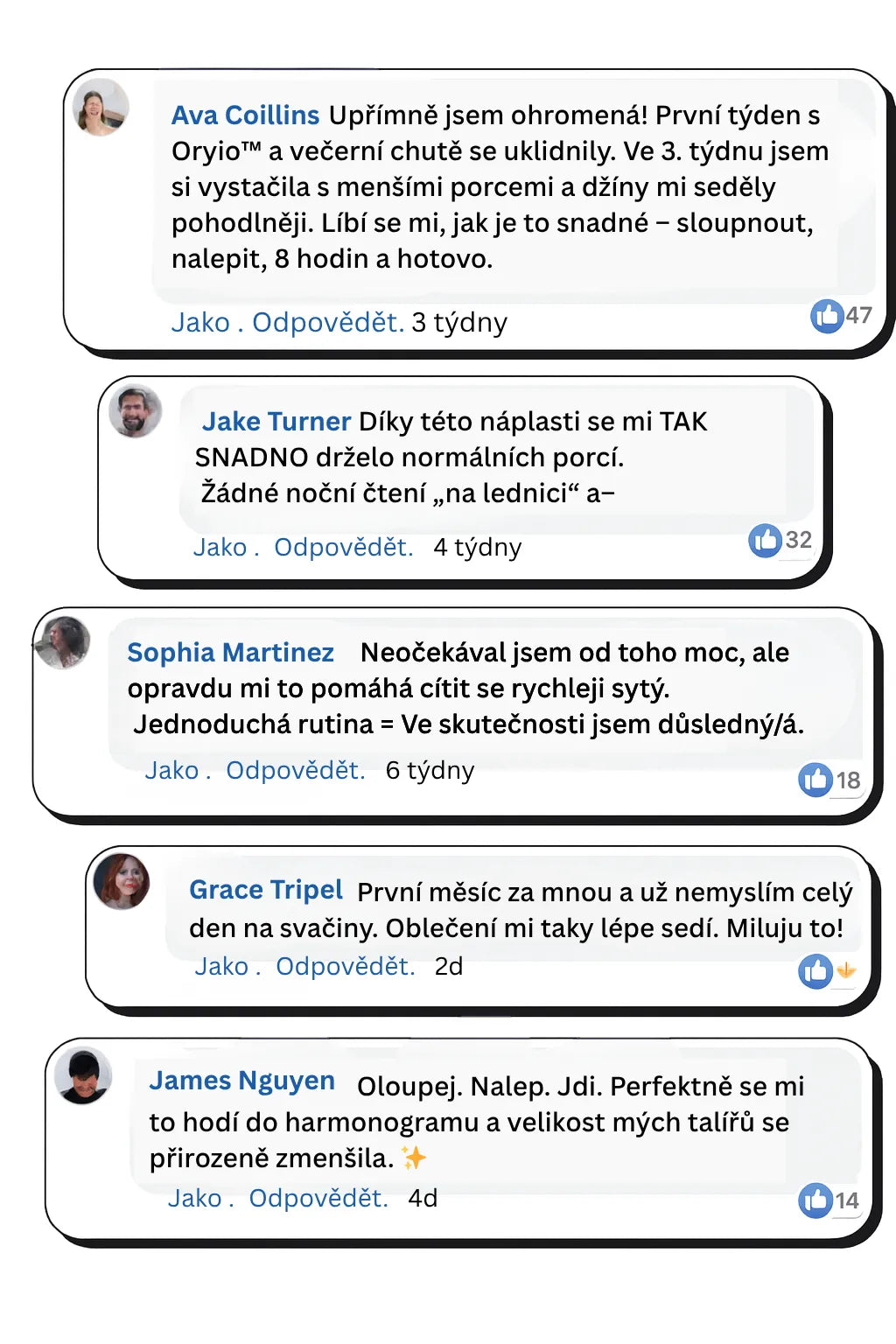Tato malá denní náplast pomáhá tvému tělu cítit se sytěji rychleji, takže jíš méně bez pocitu tlaku. Orylo™ GLP-1 náplast podporuje kontrolu chuti k jídlu, plošší břicho a lehčí pocit už po několika týdnech.
