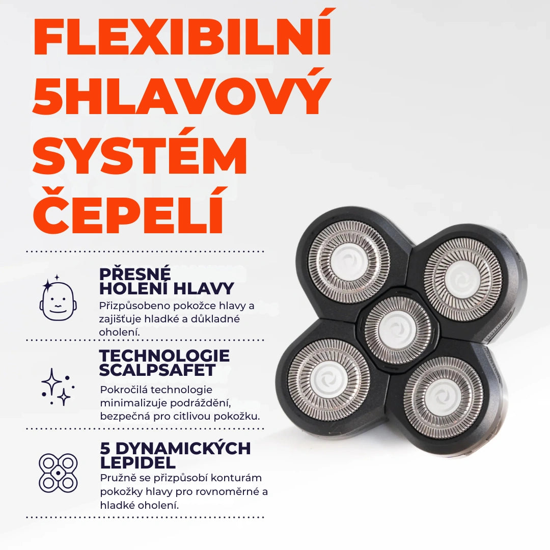 Navrženo pro pohodlné držení v ruce, umožňuje snadné holení hlavy a úplnou kontrolu.