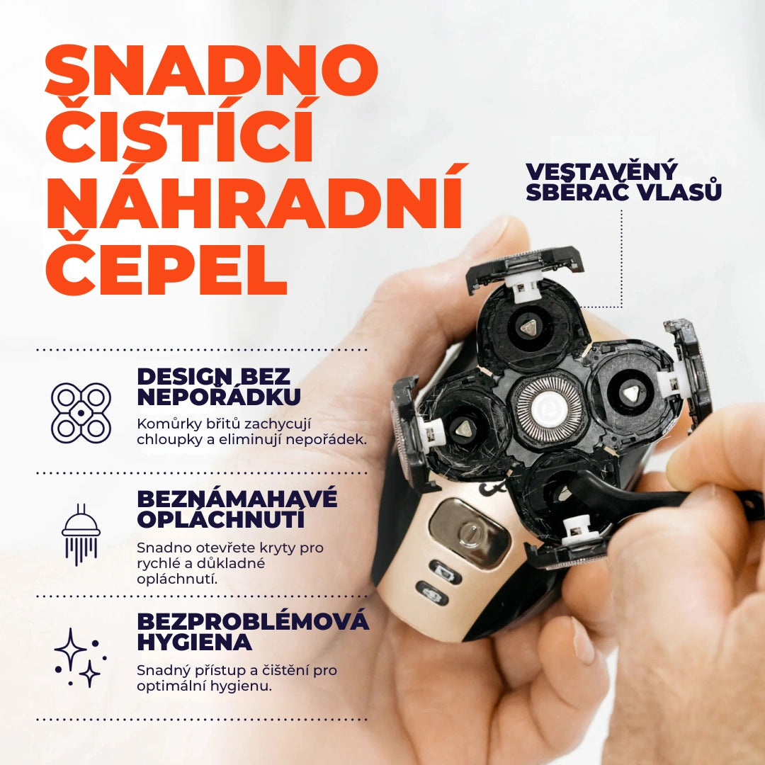 Navíc jeho otočná hlava kopíruje zakřivení hlavy, což umožňuje hladké a pohodlné holení i na těžko dostupných místech.