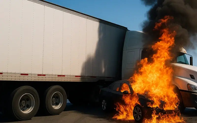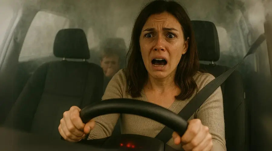 Kouř plní interiér. Zbývá jen pár vteřin, než auto zachvátí plameny.